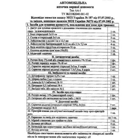Перелік вкладень Аптечки "Червоний хрест" з буторфанол тартрату, тип АА-1 *: